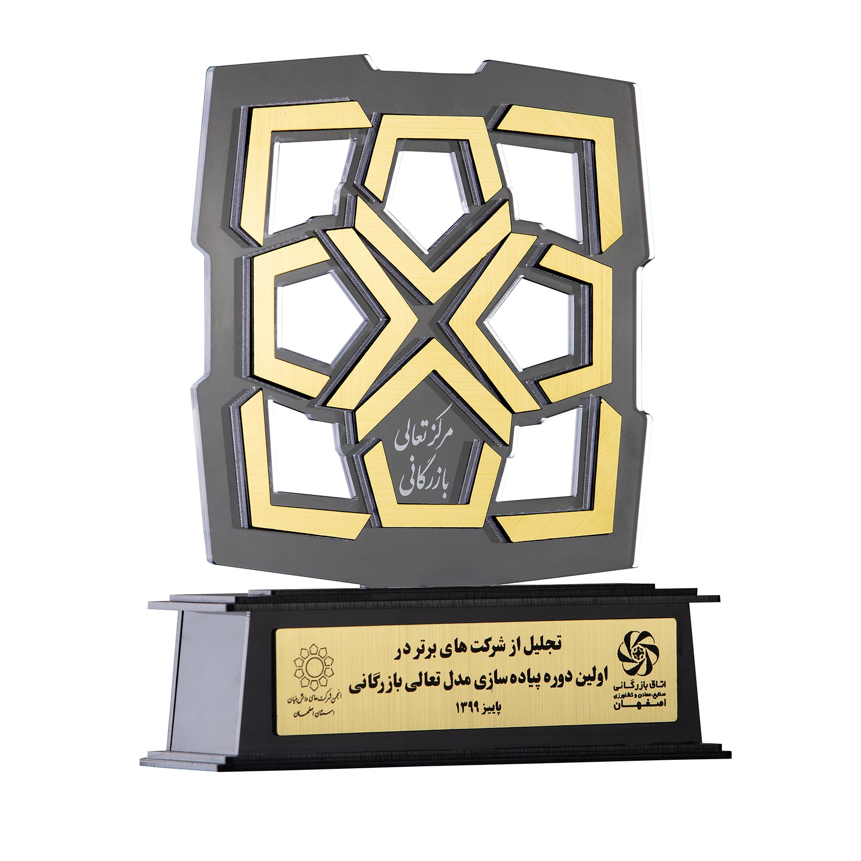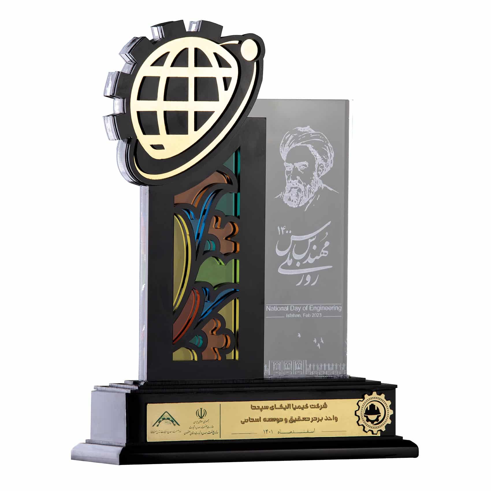 Peace and kindness have roots in the minds and take on the color of reality. Relying on this belief, the Kimia Elika Sepanta research center (with the brand name of KimesCo) has chosen the symbol of two wings of an angel on the base. The wings represent divine attributes such as beauty, power, knowledge, support, forgiveness, and foresight to protect the environment and benefit from knowledge, technology, peace, and kindness. The company's logo in the center has gold, copper, and turquoise colors. The gold color on a symbolic base made of copper indicates the human beings' ability in alchemy and happiness. The intersection point of the two wings with the base has formed the logo of Kimia Elika Sepanta Company with a turquoise border and a copper background, indicating the importance of artistic handicrafts and industry in Isfahan province and Iran.